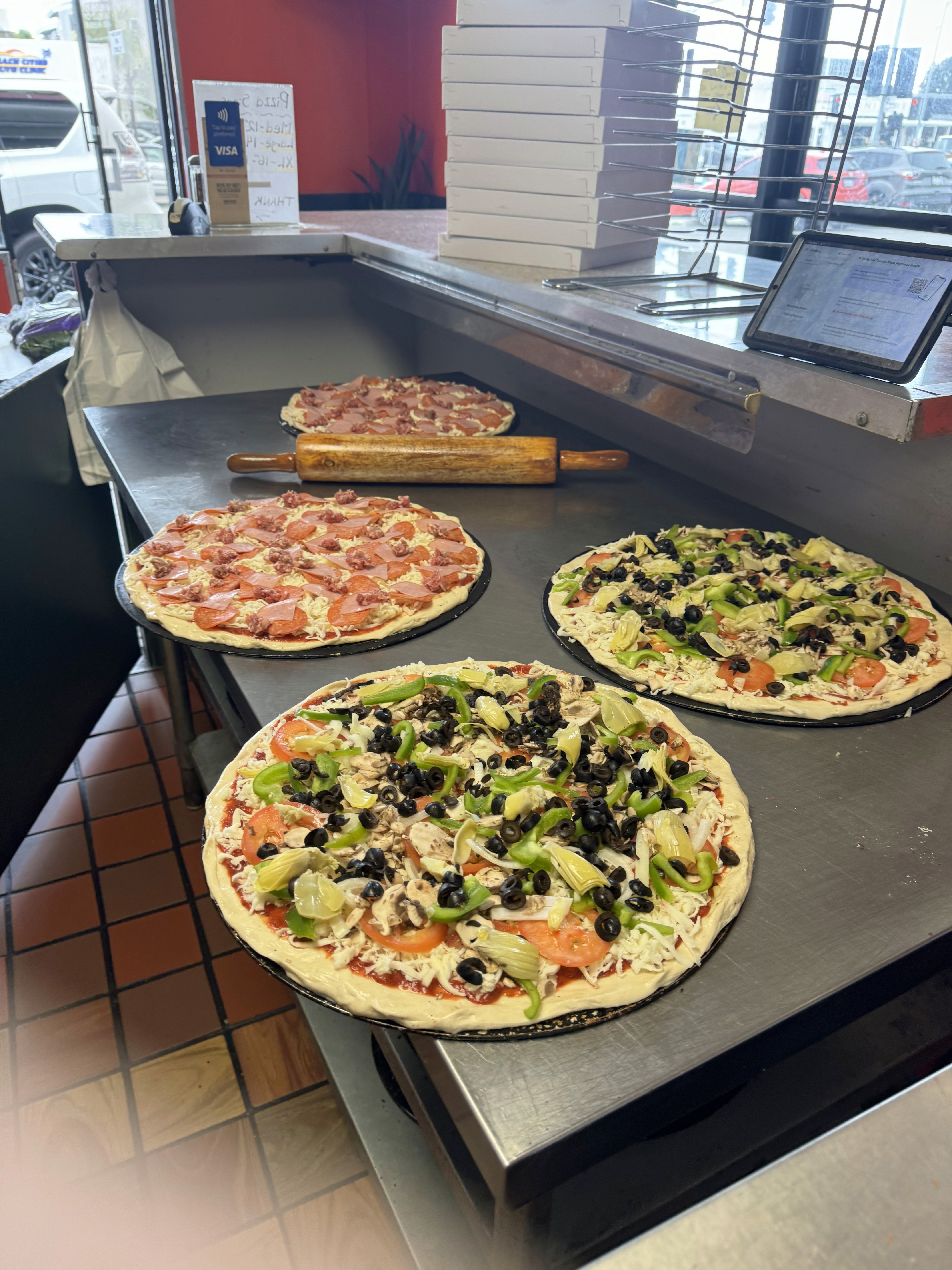 At Fat Tomato Pizza in Hermosa Beach, we keep things simple, fast, and seriously good. Right on Pacific Coast Highway, we serve up New York style thin crust pizza that is crisp, foldable, and made fresh to order every time.