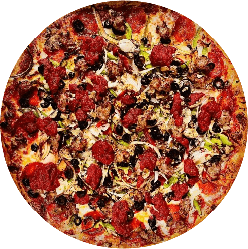We hand-toss our dough fresh daily, simmer our house-made tomato sauce from real ingredients, and load every pie with generous toppings. No shortcuts. No frozen. Just real pizza — the way it should be.